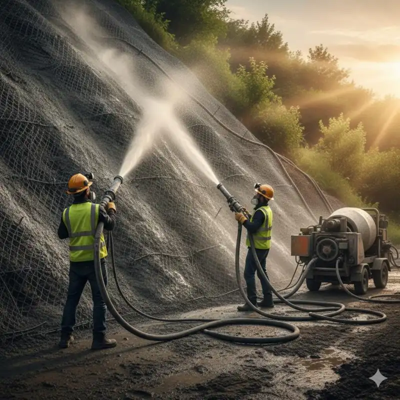 - Uma das principais vantagens da contenção de talude com concreto projetado é a rapidez na aplicação, o que proporciona agilidade na execução dos projetos;